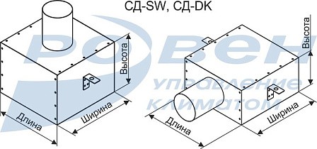 В – подвод воздуховода (В - сверху, Б - сбоку);