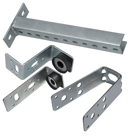 V-образный кронштейн предназначен для подвески и крепления к профнастилу. Заранее определённые точки сгиба позволяют легко приспосабливать крепление под различные виды профилей. Гайка крепления позволяет дополнительно регулировать высоту подвески. Для систем, где критична передача вибрации, рекомендуется дополнительно использовать антивибратор.