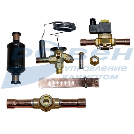 Терморегулирующий вентиль (ТРВ) – один из основных компонентов, задачей которого является дросселирование и регулирование расхода хладагента на входе в испаритель таким образом, чтобы в нем наиболее эффективно проходил процесс «кипения» хладагента и как следствие охлаждение поступающего на фреоновый испаритель воздуха. При этом хладагент должен полностью перейти в газообразное состояние. Это необходимо для надежной работы компрессора и исключения его работы т.н. «влажным» ходом (т.е. исключения случая попадания жидкого хладагента в компрессор).